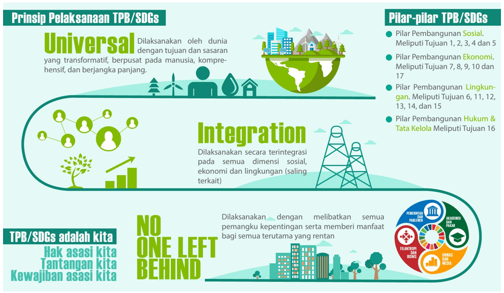 Menurut paparan Dr. Vivi Yulaswati, Kepala Sekretariat Nasional SDGs, sistem koordinasi nasional SDGs dibentuk melalui Perpres No. 59 Tahun 2017, dengan melibatkan empat platform utama: pemerintah dan parlemen, organisasi masyarakat, dunia usaha, serta akademisi. Pelaksanaan TPB/SDGs dilandasi prinsip inklusivitas, integrasi, universalitas, dan komitmen ‘No One Left Behind’.