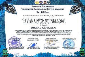 Yogyakarta, 19 Februari 2026 – Prestasi membanggakan kembali ditorehkan oleh mahasiswa Universitas Gadjah Mada (UGM). Bitha Cahya Rumansya, mahasiswi Program Studi Akuntansi Sektor Publik, berhasil meraih Juara III dalam ajang Cipta Esai Bulan Bahasa UNSIKA 2025. Kompetisi tingkat nasional ini diselenggarakan oleh Himpunan Mahasiswa Pendidikan Bahasa dan Sastra Indonesia (HIMADIKSATRASIA) FKIP UNSIKA dalam rangka memperingati Bulan Bahasa dan Sastra 2025, dengan puncak acara pengumuman pemenang yang dilaksanakan pada Senin, 15 Desember 2025 di Universitas Singaperbangsa Karawang (UNSIKA), Kabupaten Karawang, Jawa Barat.
